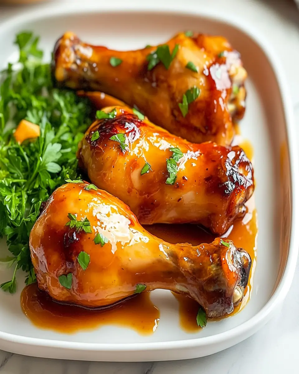 Juicy chicken drumsticks glazed with a sweet and tangy apricot sauce, perfect for grilling or baking.