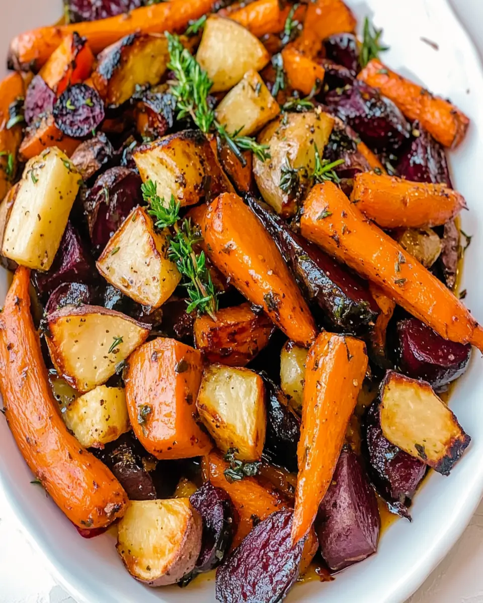 Balsamic Roasted Root Vegetables are not only flavorful but also nutritious. They are low in calories, packed with fiber, and rich in vitamins and minerals, making them a healthy addition to any diet. This dish is also vegetarian and can fit into various dietary restrictions.