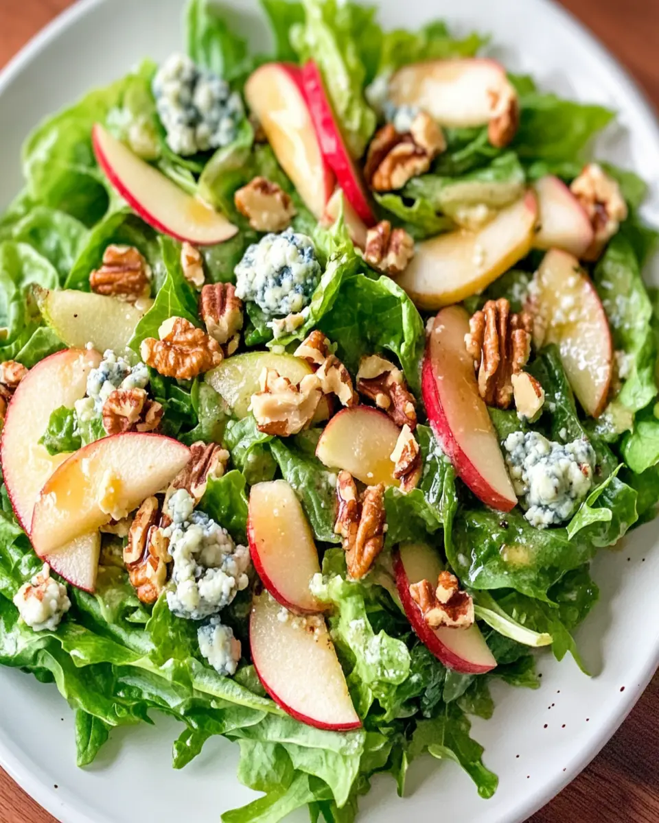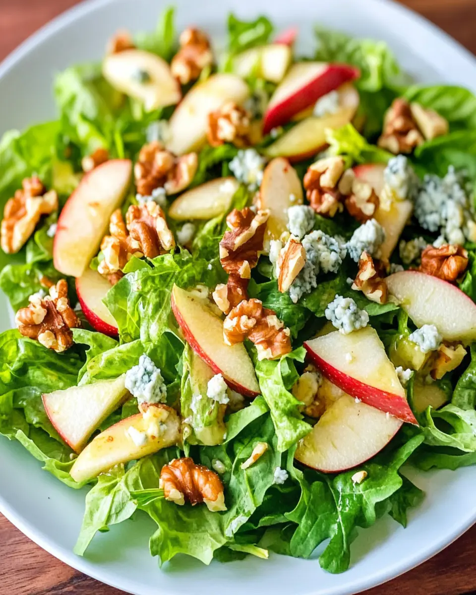 A fresh and flavorful salad combining crispy apples, crunchy walnuts, and creamy blue cheese, perfect for any occasion.