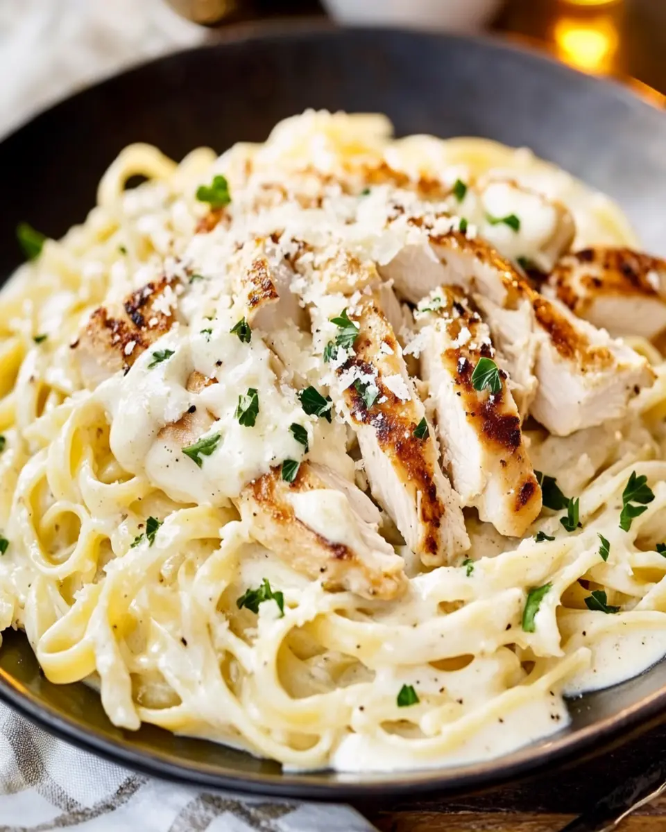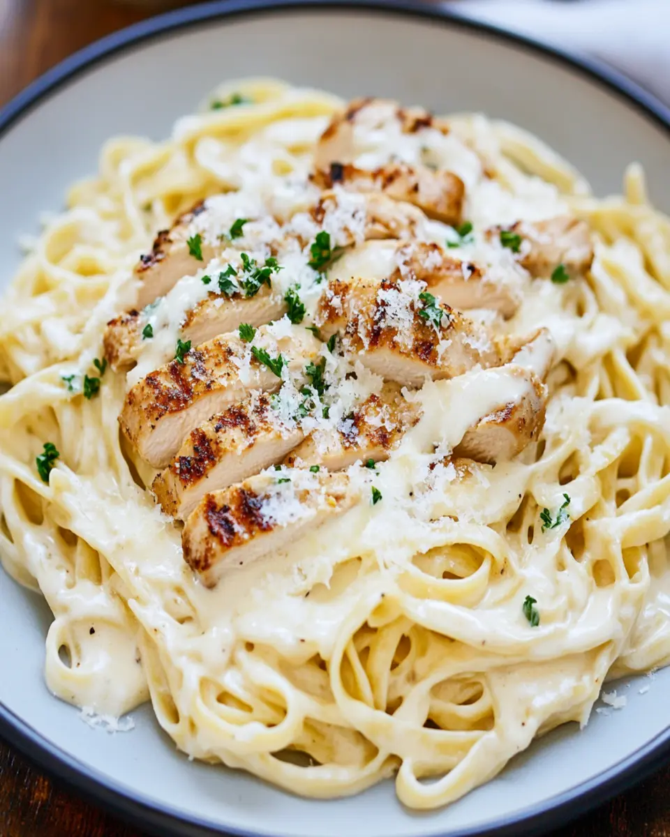A creamy and delicious chicken Alfredo pasta dish that’s easy to make and perfect for any occasion.