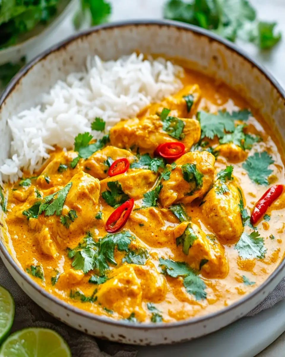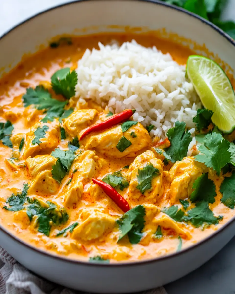 Garnish your Coconut Curry Chicken with fresh cilantro and a wedge of lime to elevate the presentation and flavor. The bright citrus notes from the lime add a refreshing kick that ties the dish together. Whether for a cozy dinner at home or a gathering with friends, these serving suggestions will ensure your Coconut Curry Chicken is a hit!
