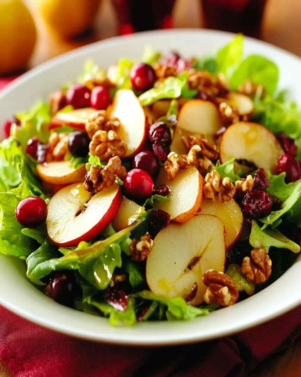 A refreshing salad combining cranberries, pears, and greens, perfect for any occasion.