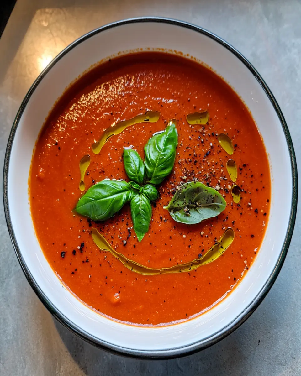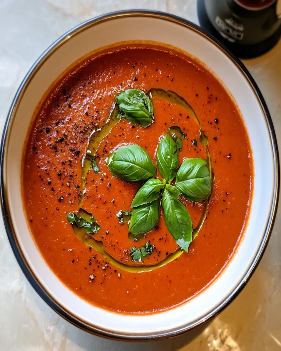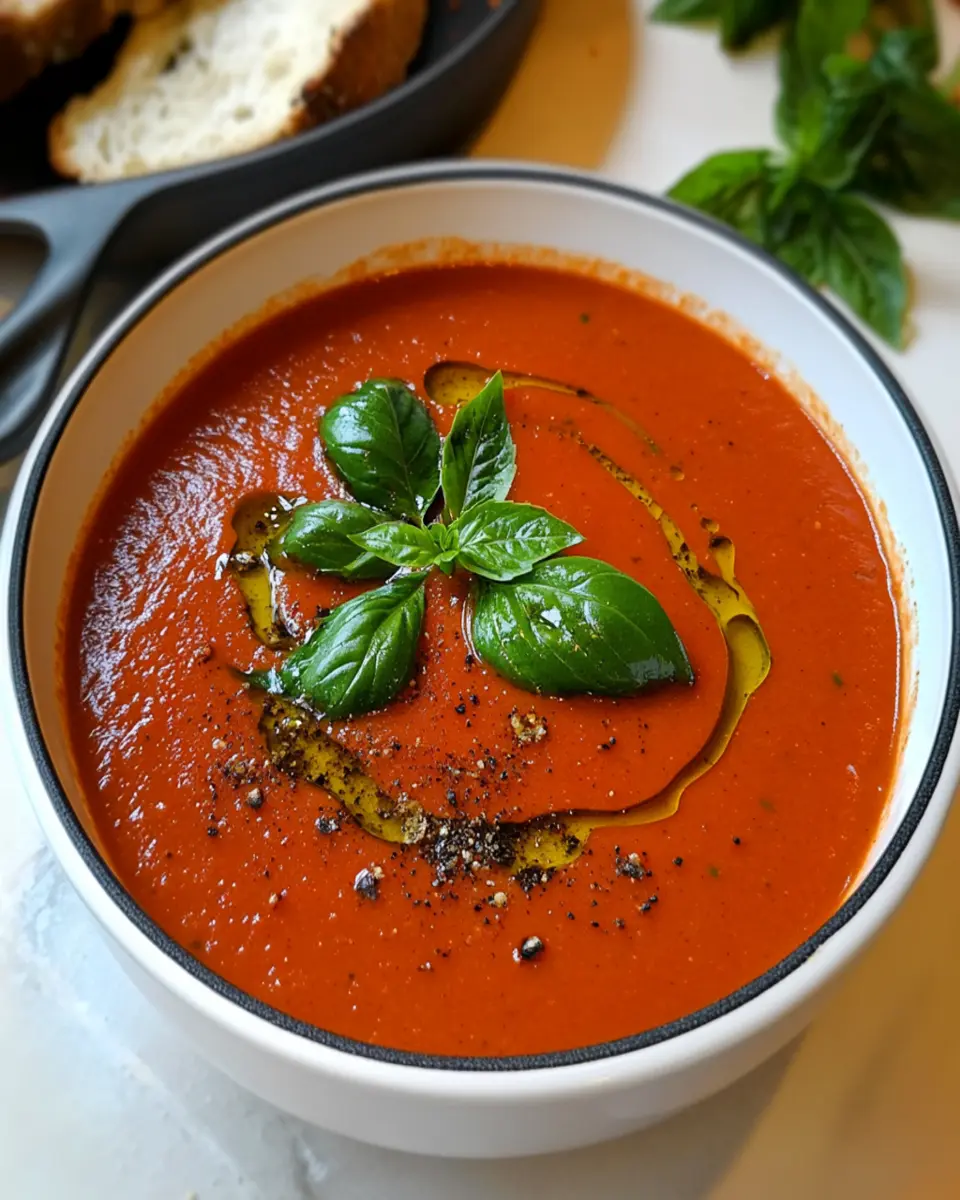 A rich and creamy soup with fresh tomatoes and basil, perfect for a cozy meal.