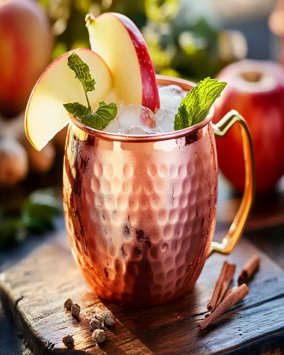 The Ginger Apple Moscow Mule is a refreshing cocktail that combines vodka, ginger beer, apple cider, and lime juice. It offers a delightful twist on the classic Moscow Mule, blending the spicy flavor of ginger with the sweetness of apple for a perfect drink.