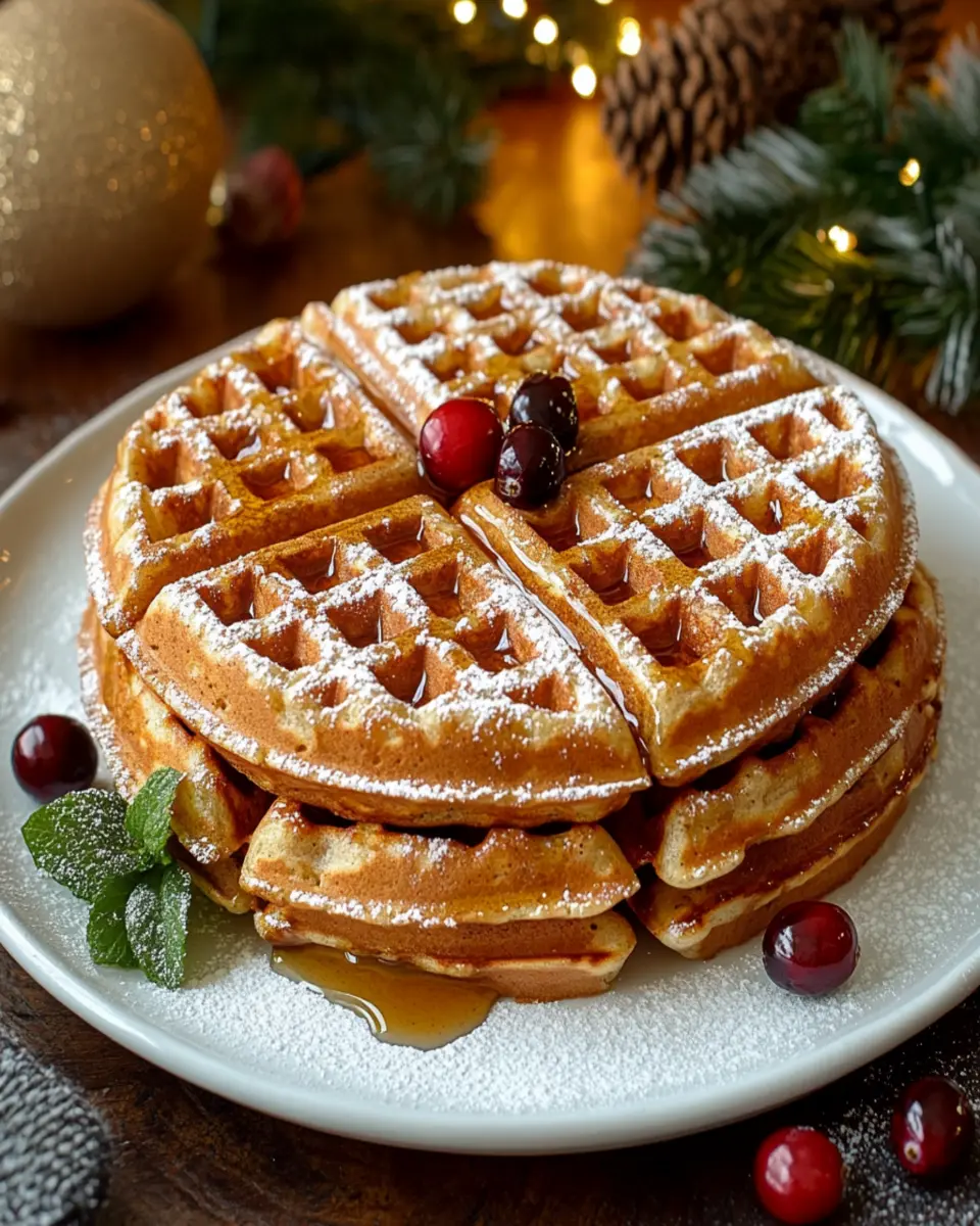 These waffles are delicious with a variety of toppings. Consider drizzling maple syrup, adding whipped cream, or topping with fresh fruit like berries or bananas. For an extra festive touch, sprinkle some cinnamon or nutmeg on top!