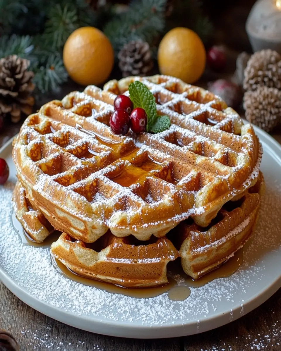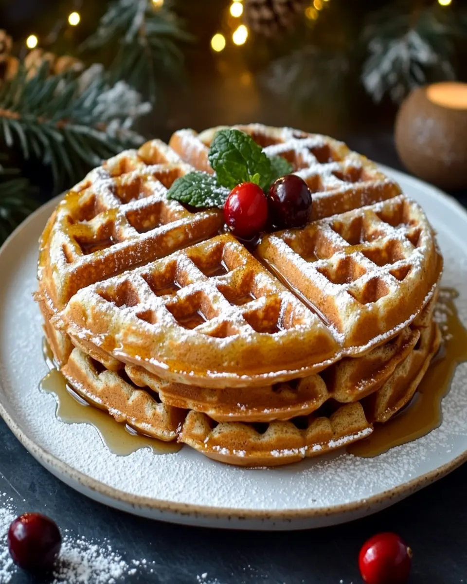 If you’re in the mood for something richer, top your waffles with a dollop of whipped cream and a sprinkle of cinnamon or nutmeg. This not only adds a creamy texture but also amplifies the holiday spices, making each bite feel indulgent. Fresh berries, such as strawberries or blueberries, can introduce a refreshing contrast, balancing out the warmth of the spices.
