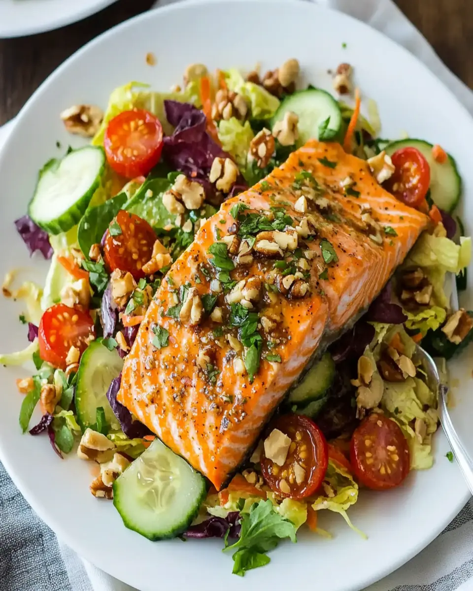 2 salmon fillets: Rich in omega-3 fatty acids, these fillets provide a tender and flavorful base for the salad, ensuring a satisfying protein boost.