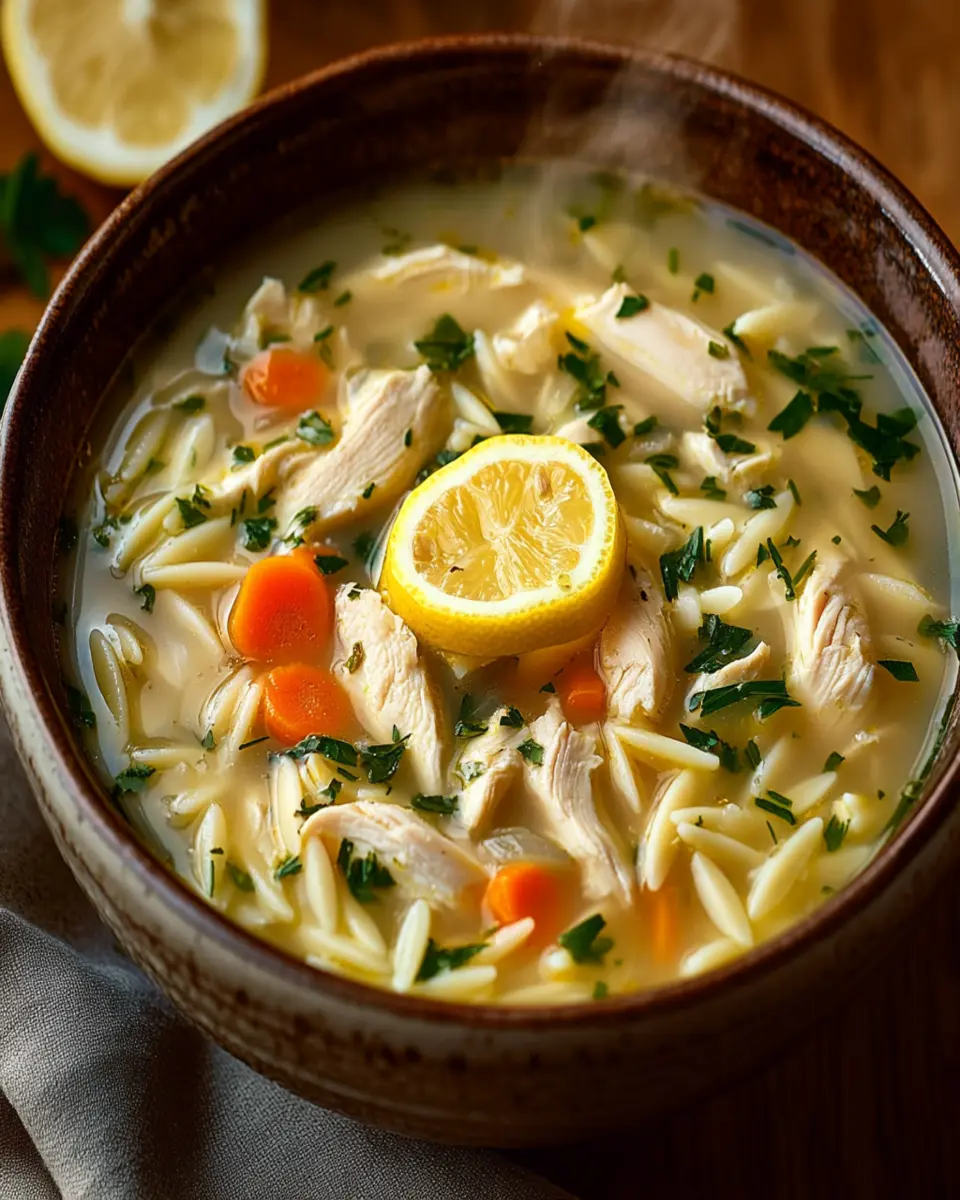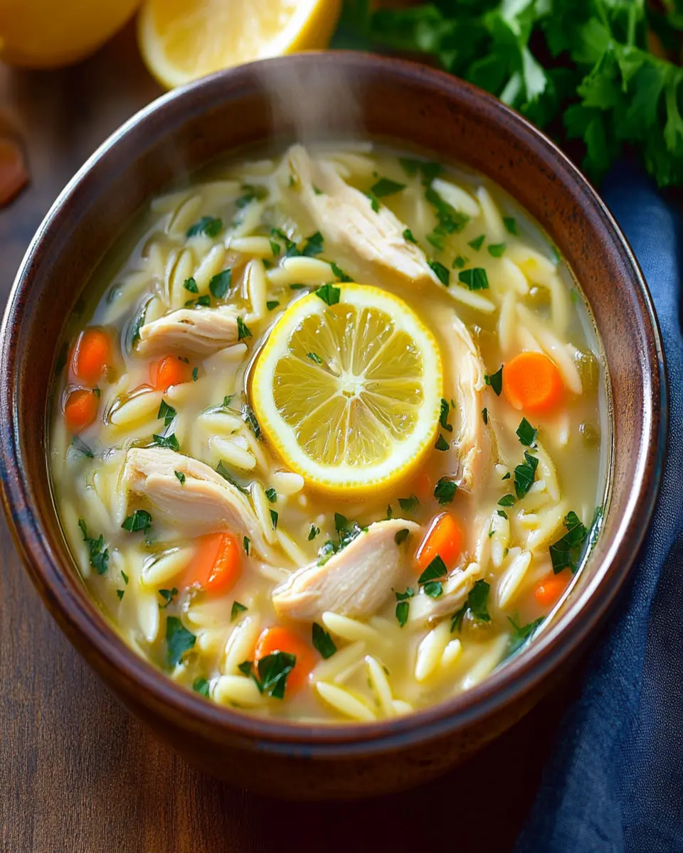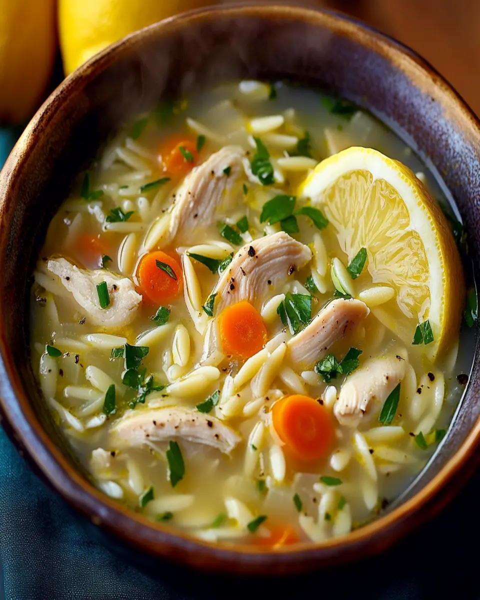 A bright and flavorful lemony chicken orzo soup, perfect for a comforting meal.