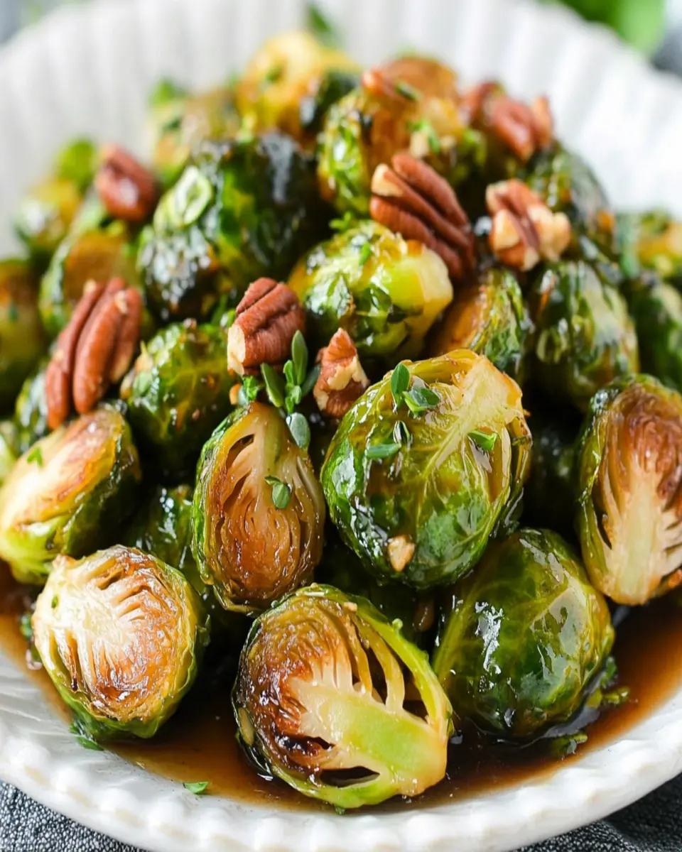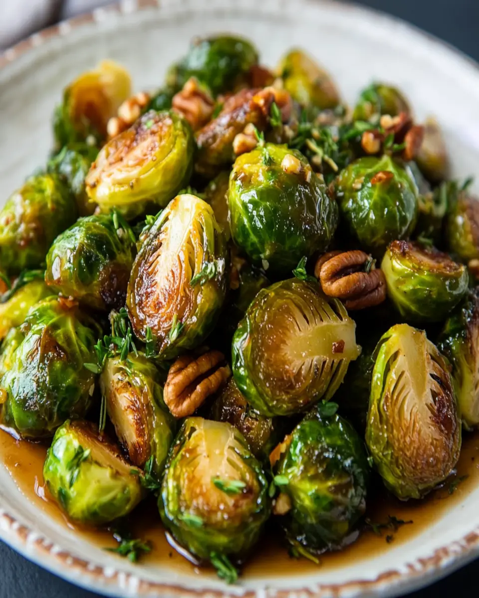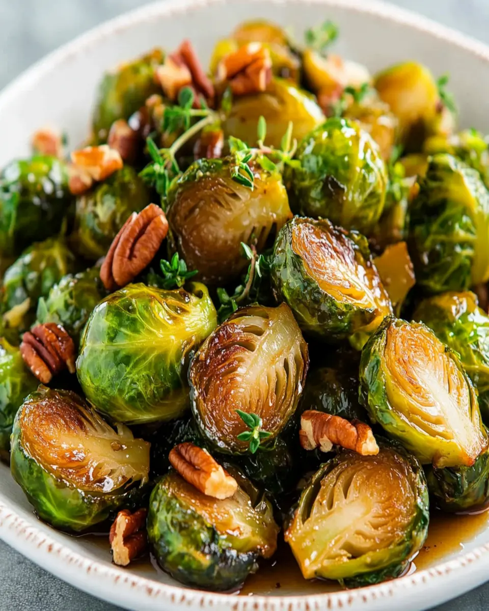 Deliciously caramelized Brussels sprouts with a sweet maple glaze.