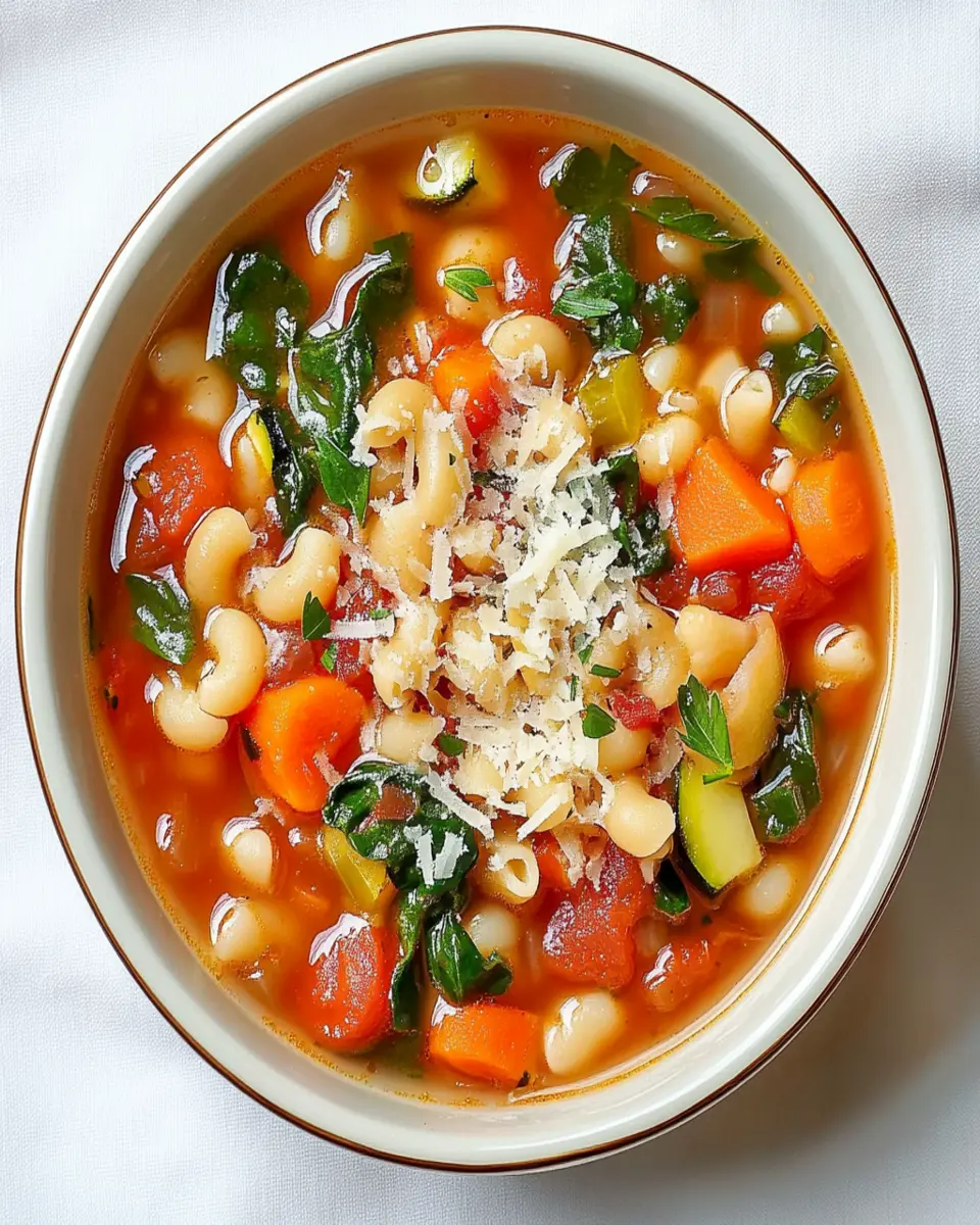 A hearty and healthy minestrone soup packed with vegetables, beans, and pasta.