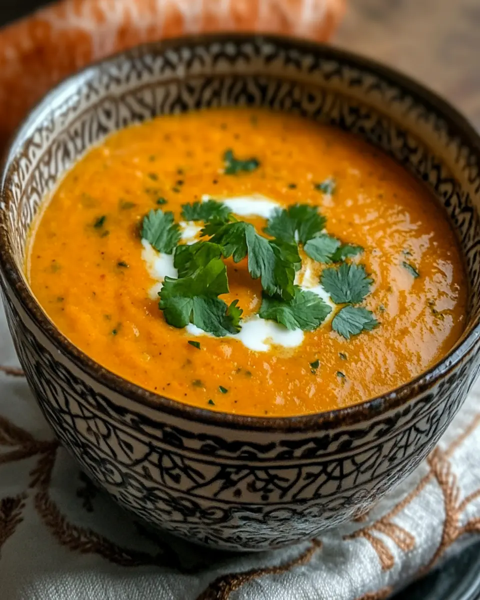 A flavorful and warming Moroccan carrot soup, perfect for a cozy meal.