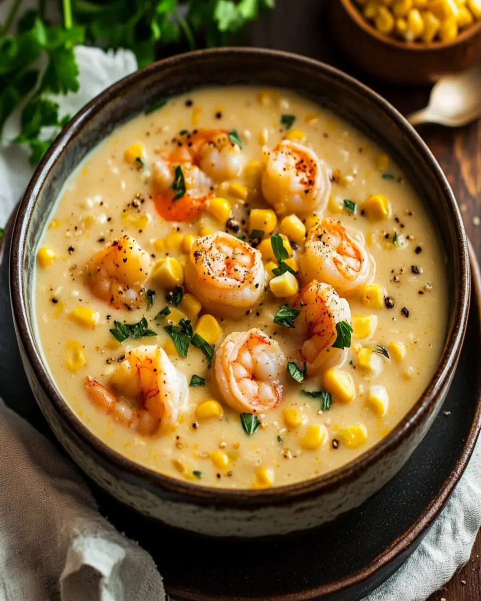 A creamy and hearty chowder featuring shrimp and sweet corn, perfect for a cozy dinner.