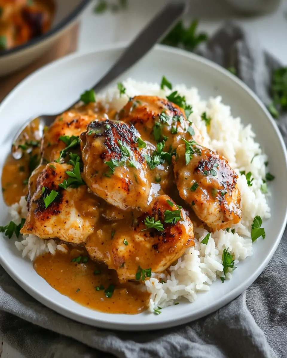 Moreover, the cooking process is straightforward, allowing even novice cooks to shine. With a prep time of just 15 minutes, this dish fits perfectly into a hectic schedule. Whether you’re cooking for yourself or entertaining friends, smothered chicken and rice promises to impress. It’s more than just a meal; it’s a comforting hug on a plate, inviting you to slow down and savor the moment. Prepare to fall in love with this easy, delicious recipe!