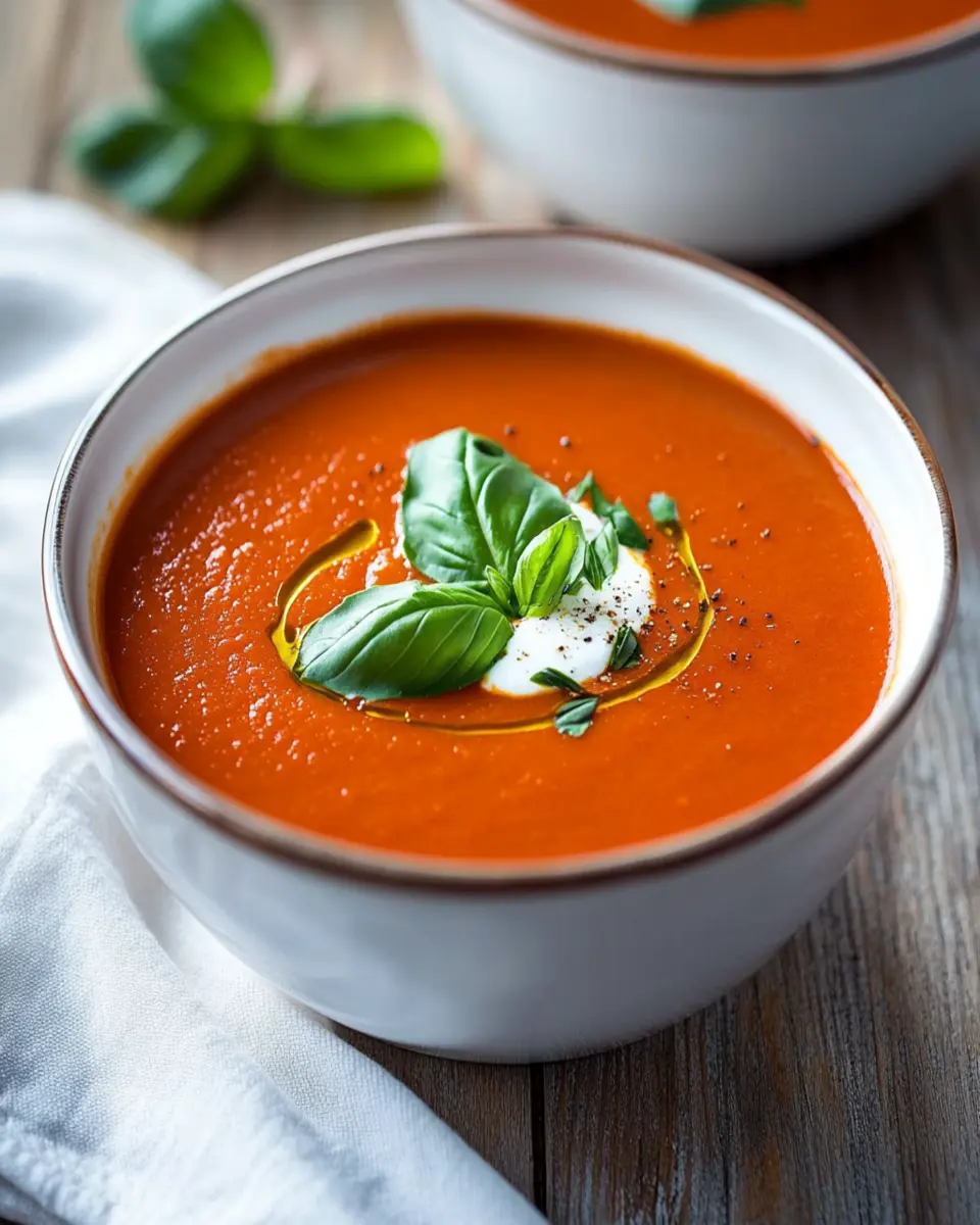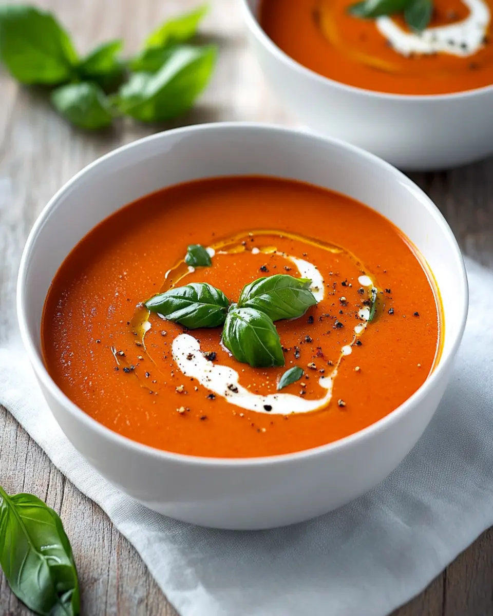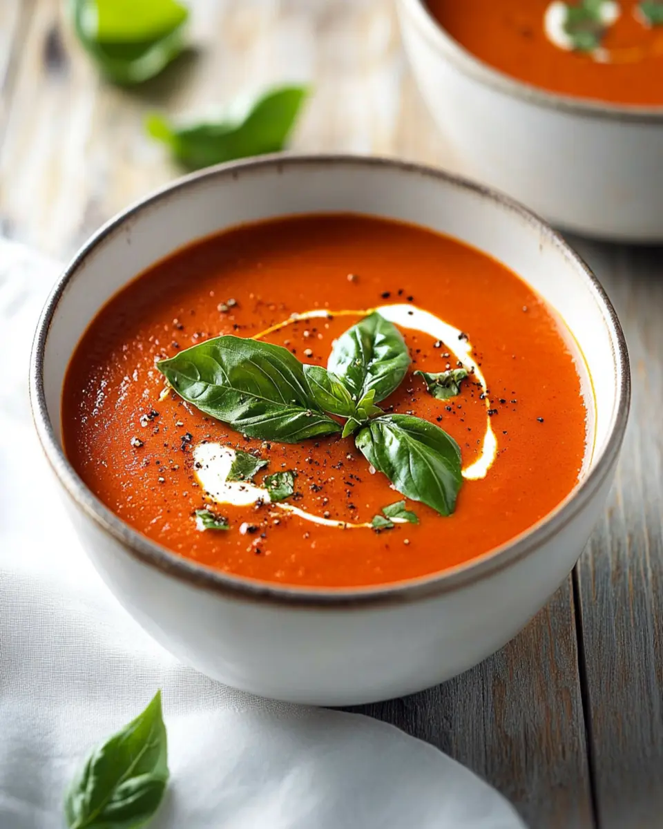 In conclusion, Spicy Roasted Tomato and Red Pepper Soup is not just a meal; it’s a warm embrace in a bowl. With its rich flavors and vibrant ingredients, this soup is perfect for young professionals and homemade-food lovers looking for a quick yet satisfying option. Whether enjoyed on a chilly evening or served as a delightful starter, it brings comfort and nourishment to any table. Don’t forget to cook, save, and share this recipe with friends and family, and let the warmth of this soup brighten their day!