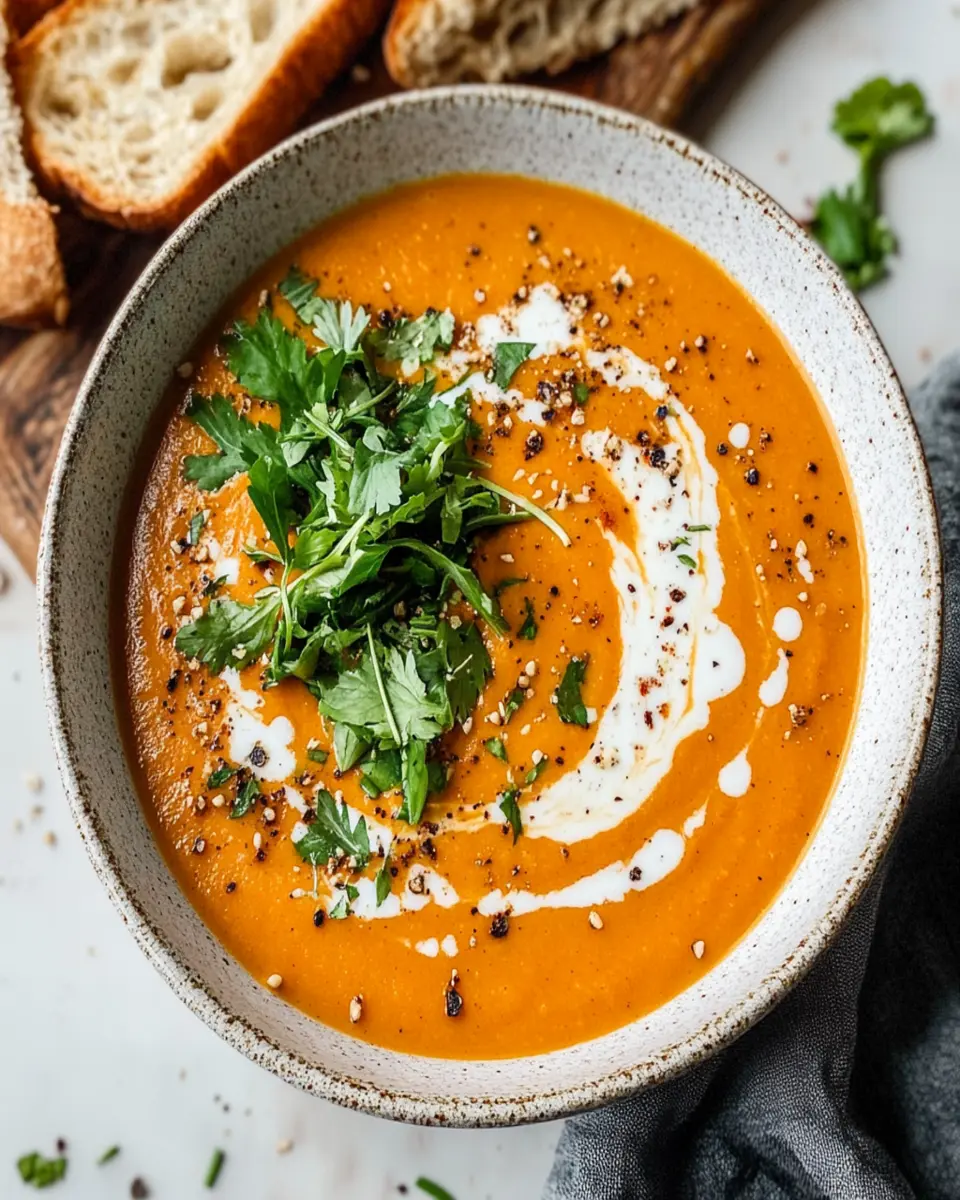 Consider garnishing your soup with a dollop of yogurt or a sprinkle of fresh herbs like cilantro or parsley. These toppings add vibrant color and a burst of flavor, transforming your bowl into a visually appealing dish.
