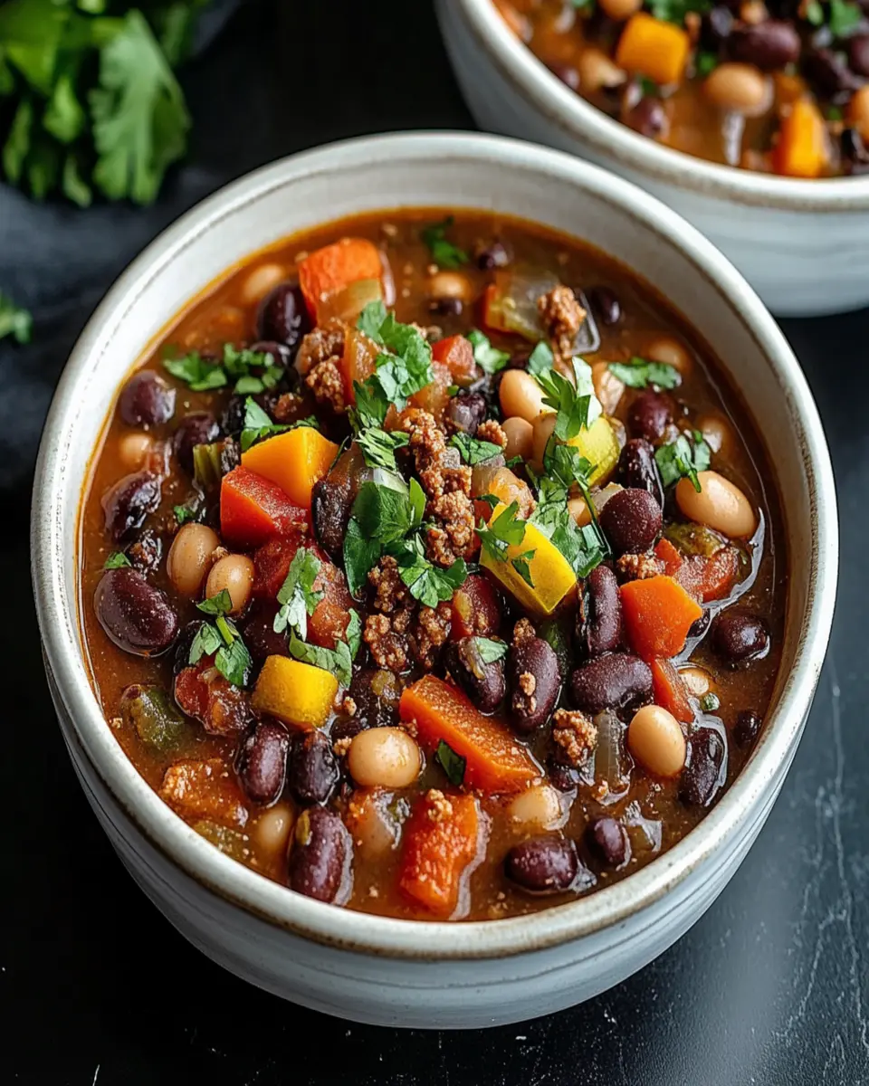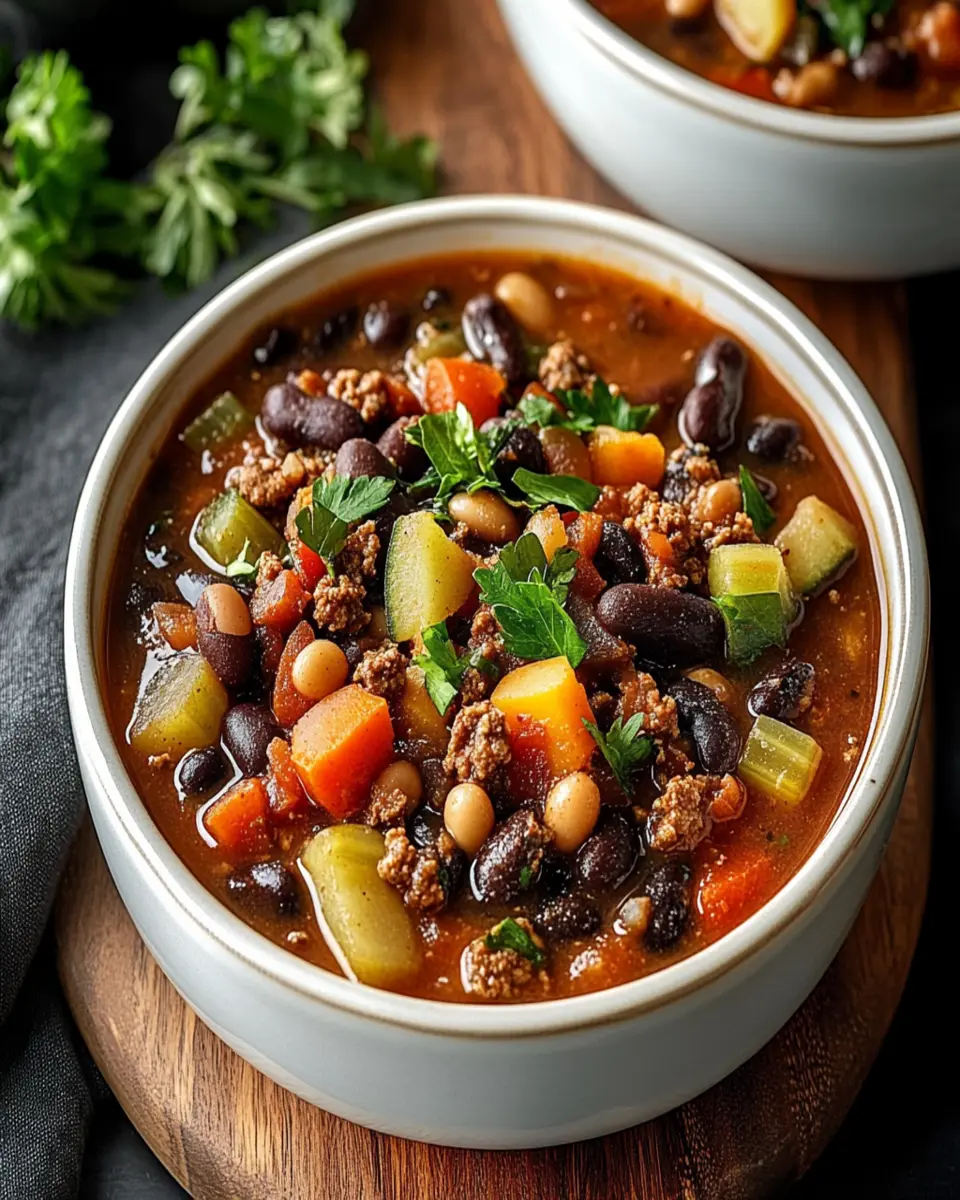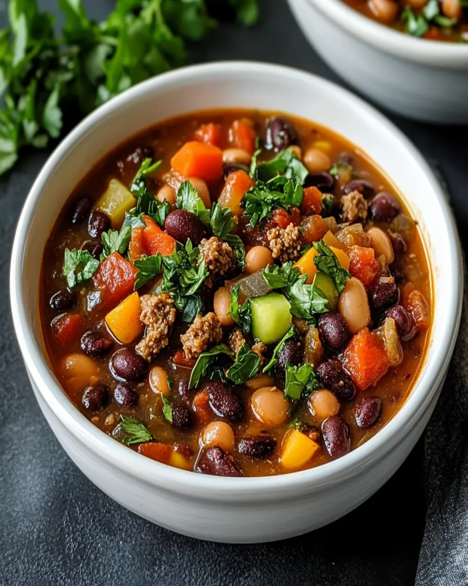 A hearty and delicious vegan soup packed with beans and vegetables, perfect for a cozy meal.